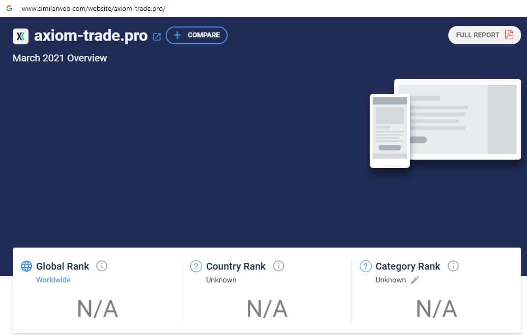 При проверке источников бренда по странам скам-организации Axiom Trade на веб-сайте similarweb com, информация отсутствует, что является признаком Форекс-кухни.