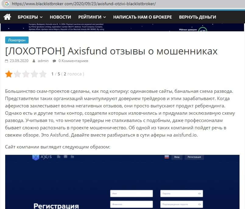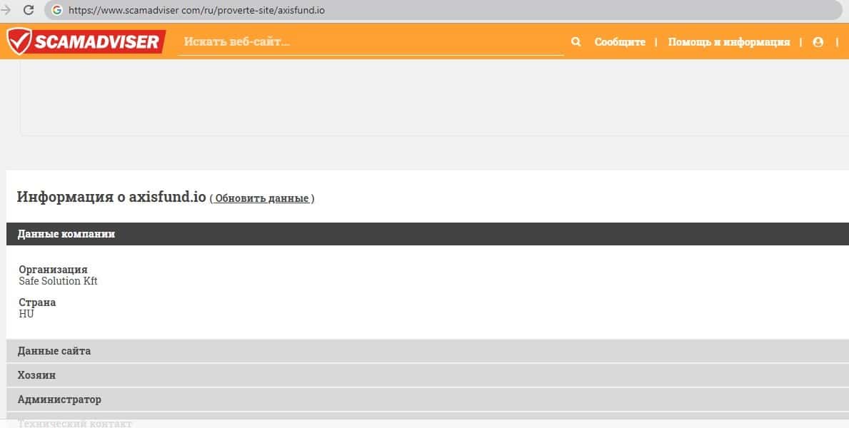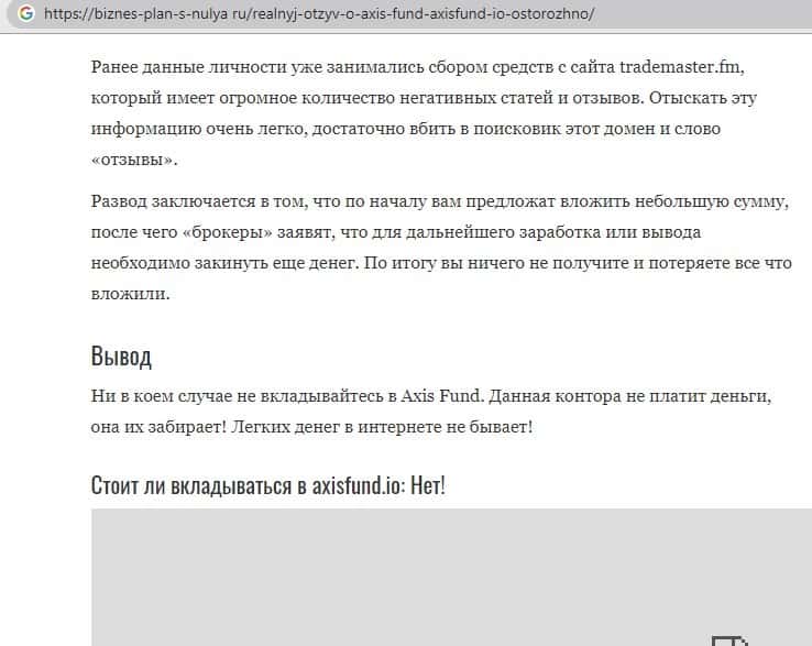 - Информация про аферистов Аксис Фонд с портала скамадвайзер