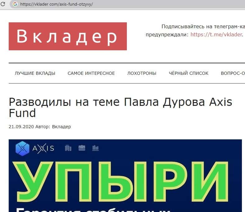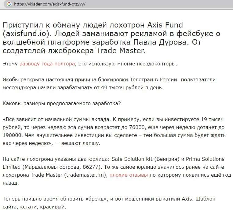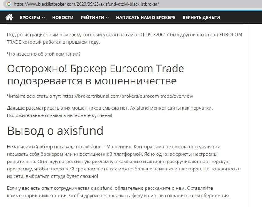 - AxisFund io - обзор мошенников на других сайтах
