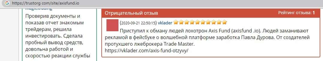 - Отзывы присутствующие на просторах интернета про аферистов Аксис Фонд