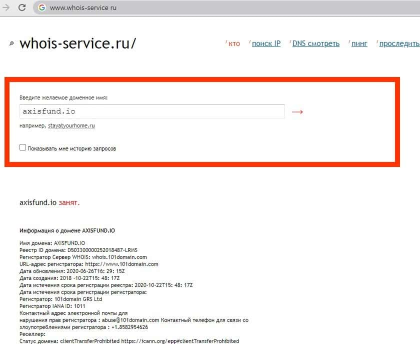 По данным сайта проверки доменов, следует то, что аферисты AxisFund io занимают данный домен довольно давно и пользуются им до сих пор. В данный момент домен занят.