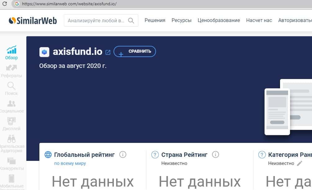 Данных по источникам трафика лохотрона Аксис Фонд нет, на портале для проверки трафиков информации по данным мошенникам нет. На изображении ниже это можно увидеть.