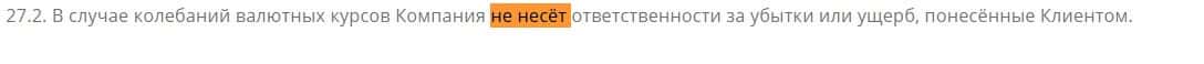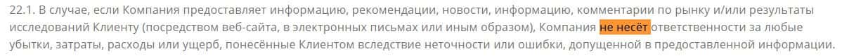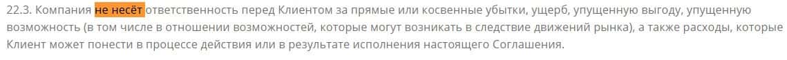 Подводные камни данного соглашения есть и в пункте 22.3. Здесь идет речь о том, что любые риски и потери пользователя полностью ложатся на его ответственность.