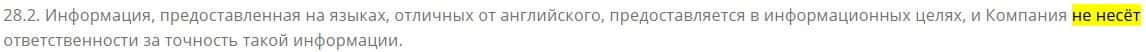 Еще одна фишка, как можно оправдать ложную информацию, которую лохотронщики AlantraGlobal впаривают трейдерам - пункт 28.2 неточный перевод на официальном сайте!
