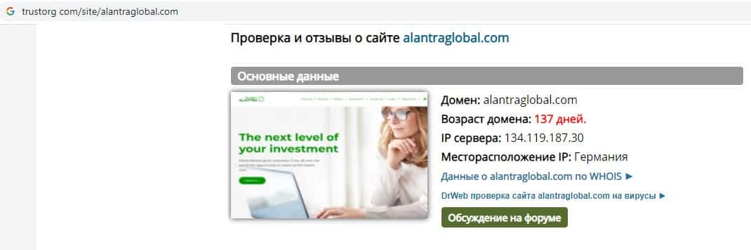 - Какой реальный возраст домена хайп-проекта AlantraGlobal?