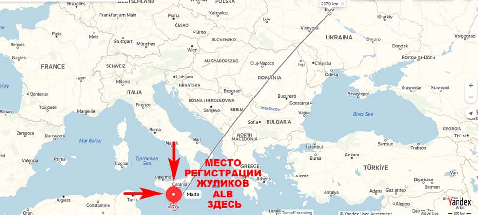 Крайне хитро умудрились припрятать проходимца из шарашкиной компании АЛБ похищенные деньги - все средства находятся весьма далеко, а именно - в Мальте. Вывод средств в офшорную зону - явный признак скрытия незаконной деятельности. Их адрес: ALB LIMITED 48, улица Августо Бартоло, улица Каса Рома, TA 'XBIEX XBX 1099, Мальта.