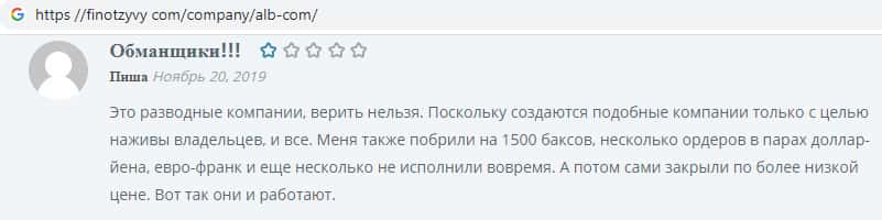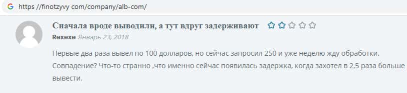 Еще один отрицательный отзыв о лохотронской организации ALB
