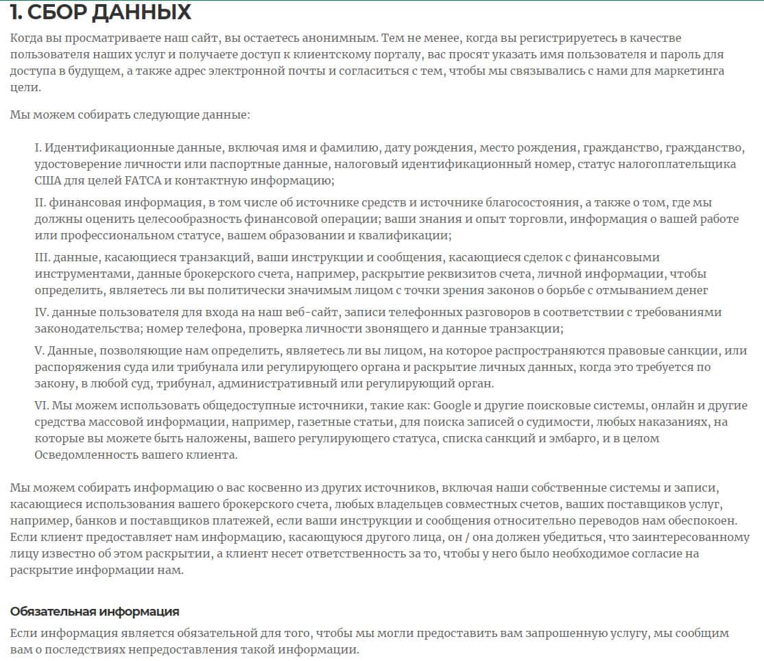 В первом разделе политики конфиденциальности "Сбор данных" сообщается, что аферисты из шараги ALB вправе собирать с разных источников целый перечень личных данных своих клиентов, включая финансовую информацию, в том числе об источнике средств и источнике благосостояния. Но зачем нечестным на руку мошенникам такие сведения?