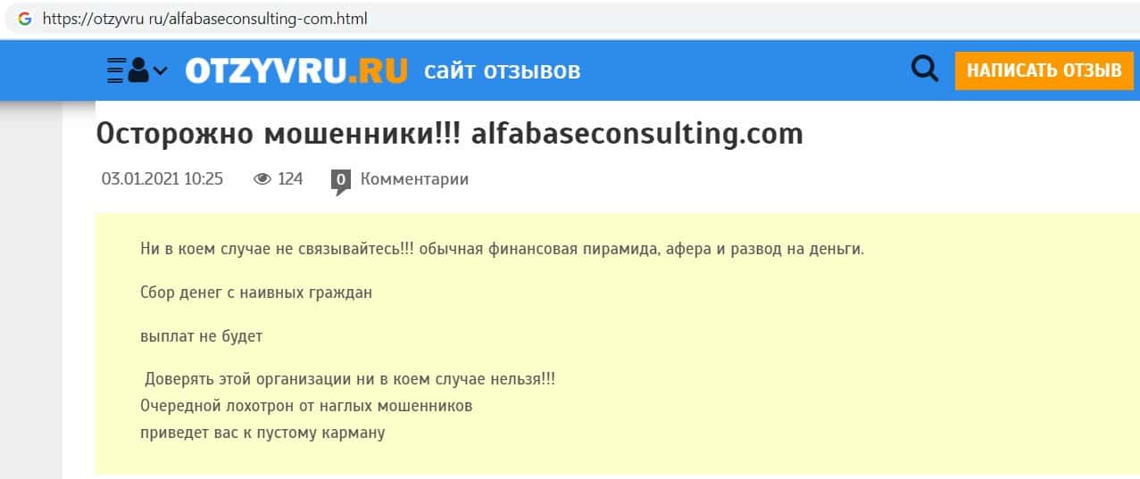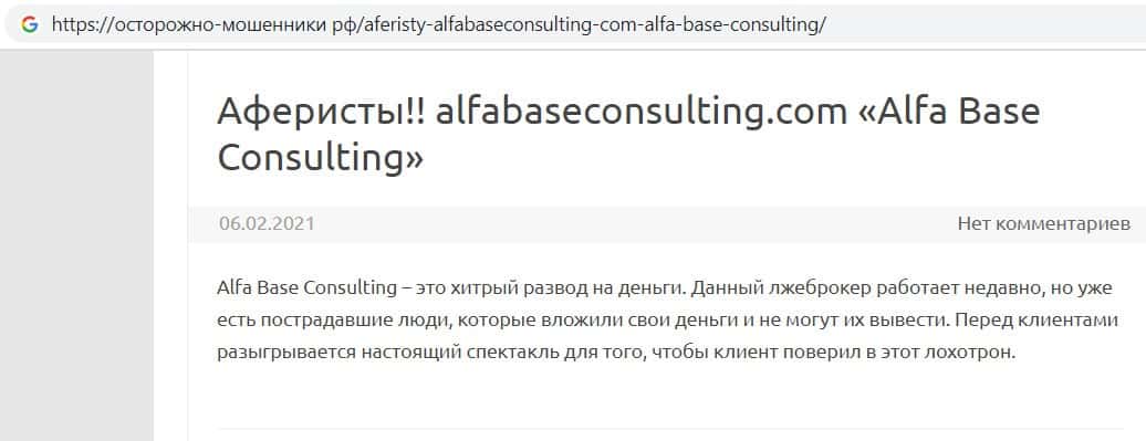 - Отзывы интернет пользователей о лохотроне Альфа Бейс Консалтинг