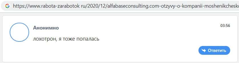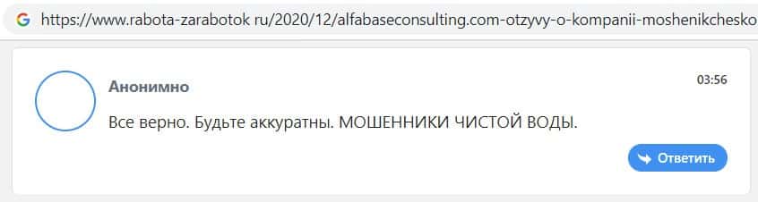 Отзывы интернет пользователей о лохотроне Альфа Бейс Консалтинг