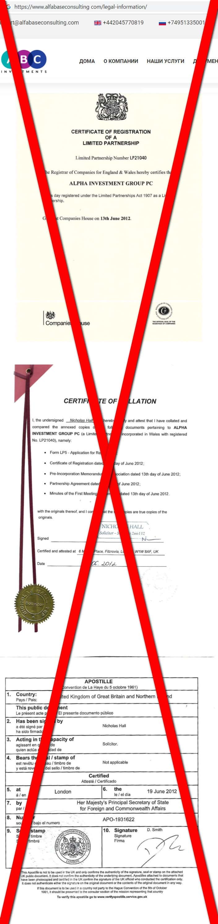 Мошенническая контора ABC investments на своём сайте представила информацию о своём юридическом лице, которым в свою очередь оказалась фирма Alfa Investment Group LP.
