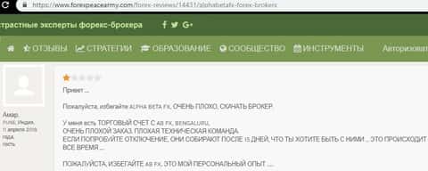 Брокерская контора Альфа Бета ФХ предоставляет ужасный сервис