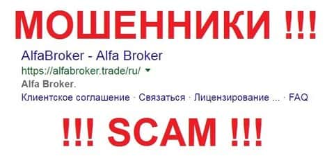 Alfa Broker - очередная финансовая кухня с регистрацией в оффшорном государстве Маршалловы Острова, которая осуществляет мошенническую деятельность, направленную на облапошивание простых пользователей сети Интернет из разных стран мира, в том числе тех, кто проживает и на территории РФ. Советуем обходить этих явных жуликов стороной, так как данный псевдоброкер не выводит деньги собственным клиентам !!!