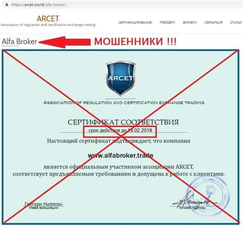 Мошенники из Alfa Broker подстраховались на тот случай, если будущие клиенты захотят проверить их лицензию. На сайте находим сертификат, разрешающий работу с клиентами. Однако выявить лживую подноготную жуликов легко: срок действия лицензии давно истек .