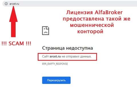 Кроме того, данная бумага выдана Альфа Брокер компанией АРСБТ, деятельность которой не регулируется законом РФ и которая не числится в реестре банка России. На любые попытки выяснить подробности об ARCET, видим такое окно о недоступности страницы.