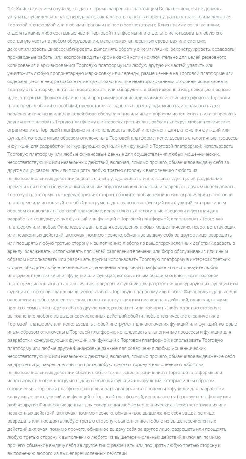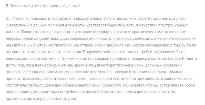 Следующий пункт в договоре ворюг AlfaDirect Trade посвящен тому, что брокер указал огромный список требований, возлагаемых на клиентов, но нет обратного списка к ним.