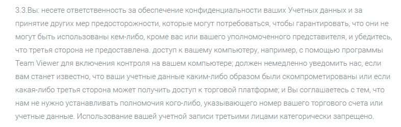 Пункт 3.3. договора посвящен тому, что Альфа Директ Трейд возложил всю ответственность на клиентов, а с себя, наоборот, снял все гарантии и ответственность в рамках закона.