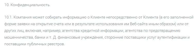 В пункте 10.1. клиентского соглашения говорится, что махинаторы AlfaDirect Trade вправе с различных источников собирать неизвестно в каких целях сведения о форекс трейдерах.