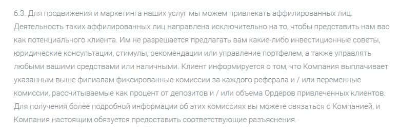 Согласно пункту 6.3. мнимый дилер AlfaDirect Trade имеет право в сотрудничество привлечь аффилированных лиц. Но непонятно, что именно таким образом пытаются скрыть мошенники.