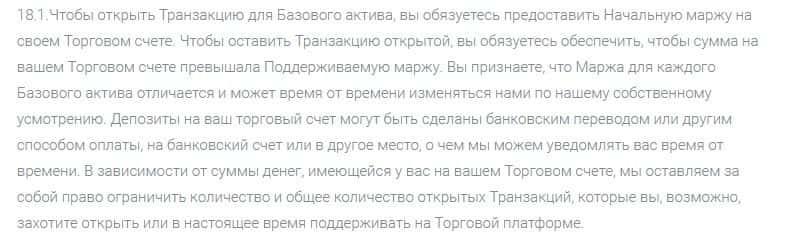 В пункте 18.1. договора говорится, что брокер AlfaDirect Trade имеет право по непонятным причинам устанавливать в каждом отдельном случае свой размер маржи. Но это кидалово.