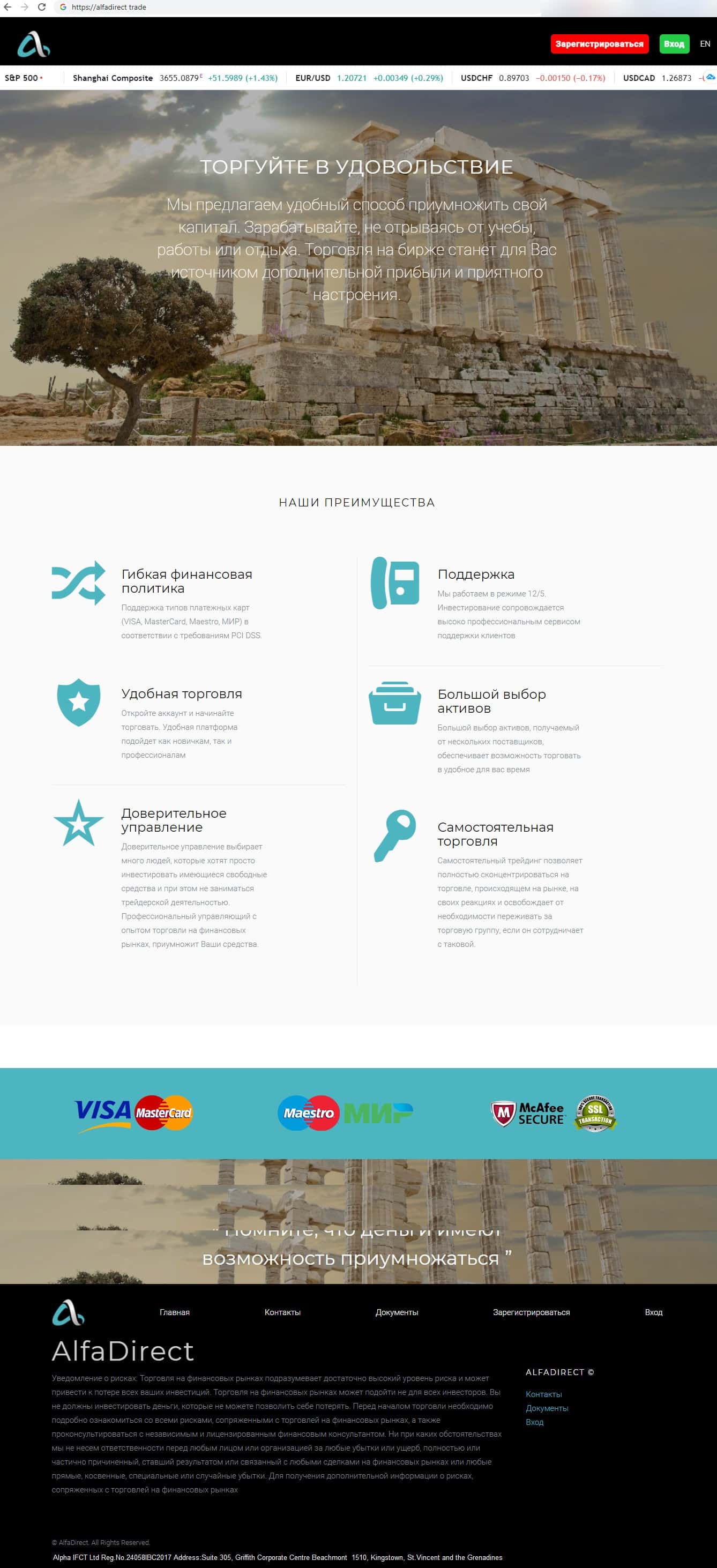 alfadirect trade - официальный интернет-ресурс мошеннического брокера AlfaDirect Trade