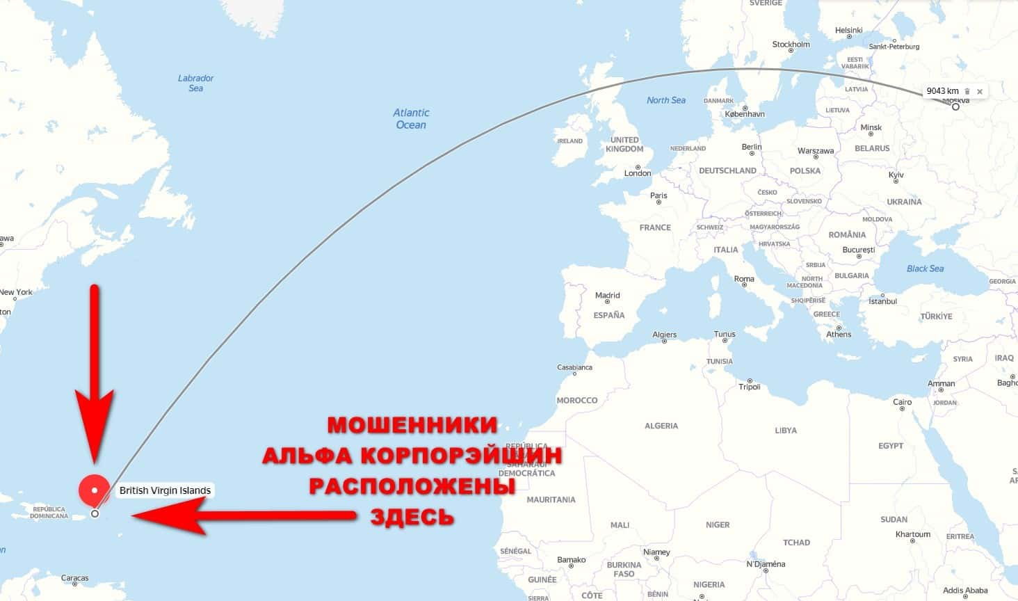 Согласно данным на сайте брокерской конторы Альфа Корпорэйшин, мошенники имеют прописку на Виргинских островах, что является оффшором и помогает им укрывать от закона.
