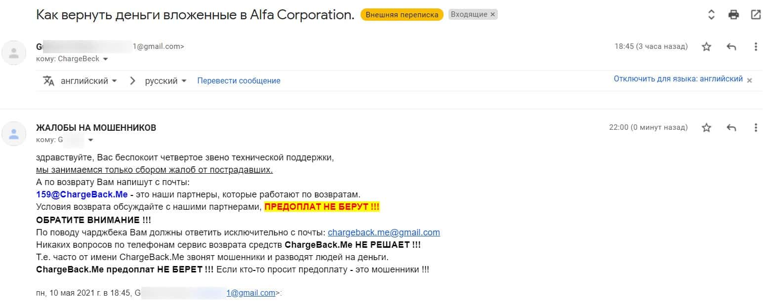 По поводу перспективы вернуть вложенные деньги назад от АФЕРИСТОВ Альфа Корпорэйшин - напишите сообщение на почту [email protected]