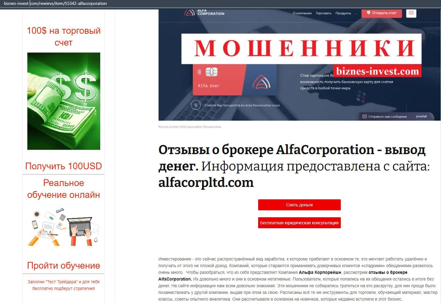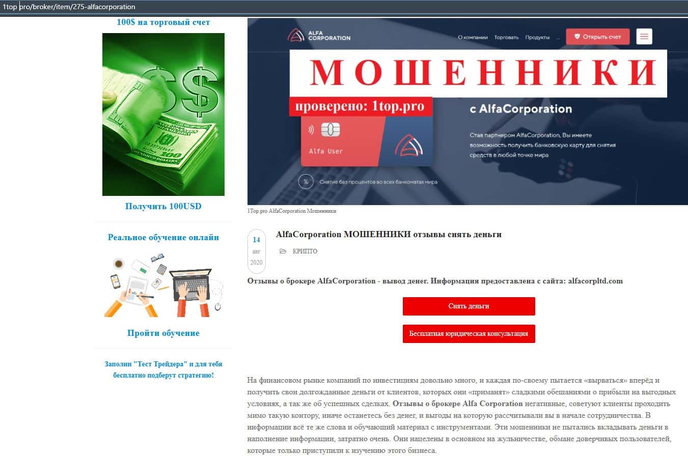 - Статьи о мошеннической конторе AlfaCorpLTD