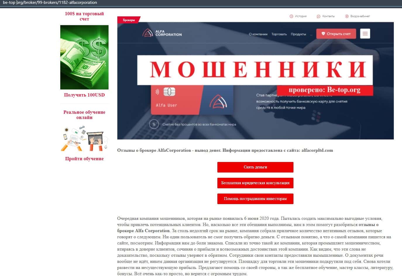 - alfacorpltd com - официальный сайт лохотрона Альфа Корпорэйшин