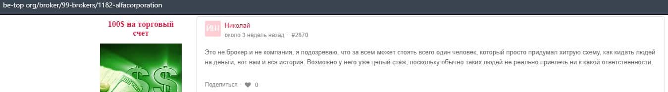 - Трейдеры не рекомендуют связываться с Альфа Корпорэйшин
