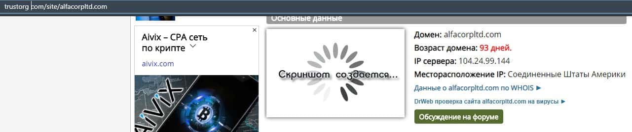Исходя из информации на ресурсах по проверки доменов, сайт конторы Альфа Корпорэйшин создан недавно, так как этот хайп - это кухня-однодневка.