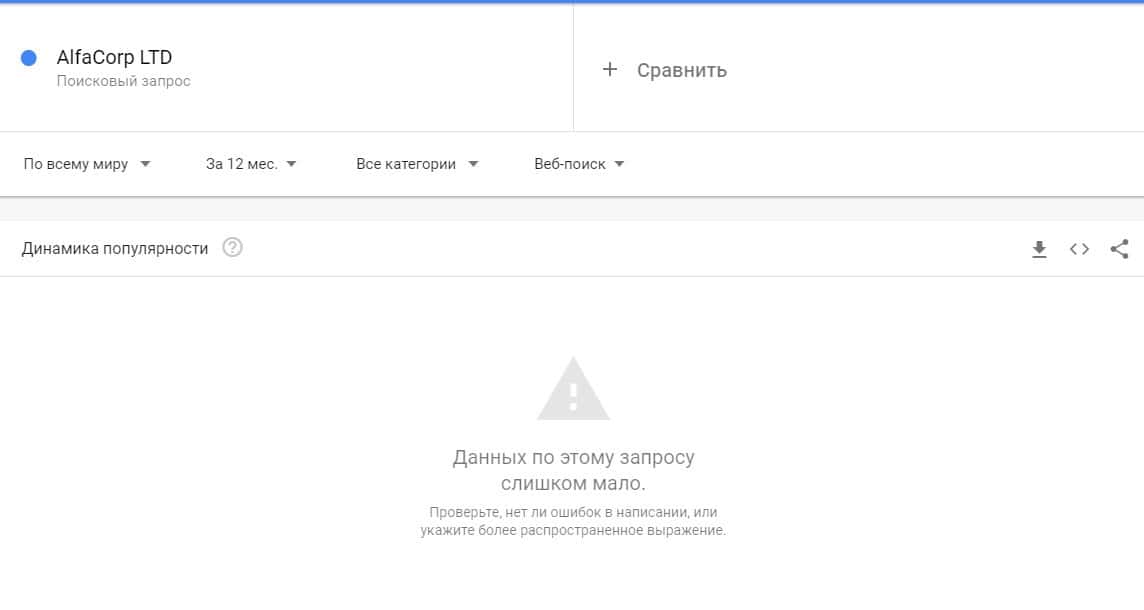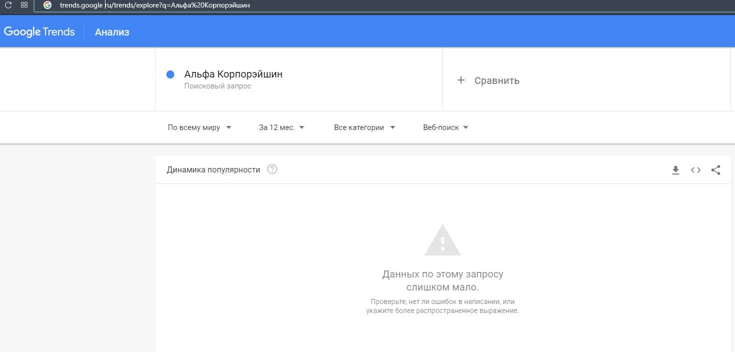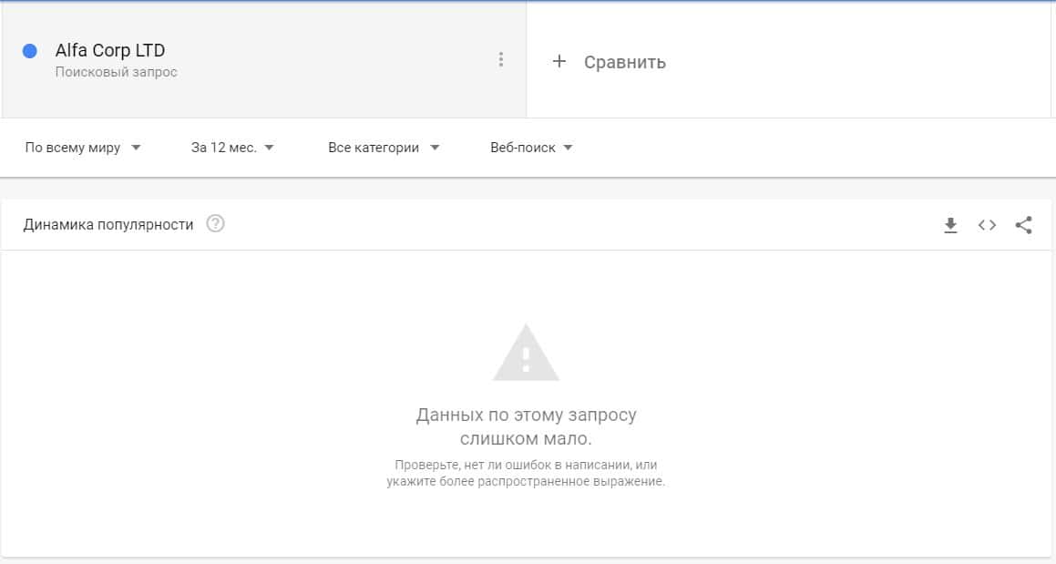 Бренд конторы "Альфа Корпорэйшин" в Гугл не искался вообще, поэтому данную контору можно считать не популярной, тем более так говорит система Гугл Трендс.