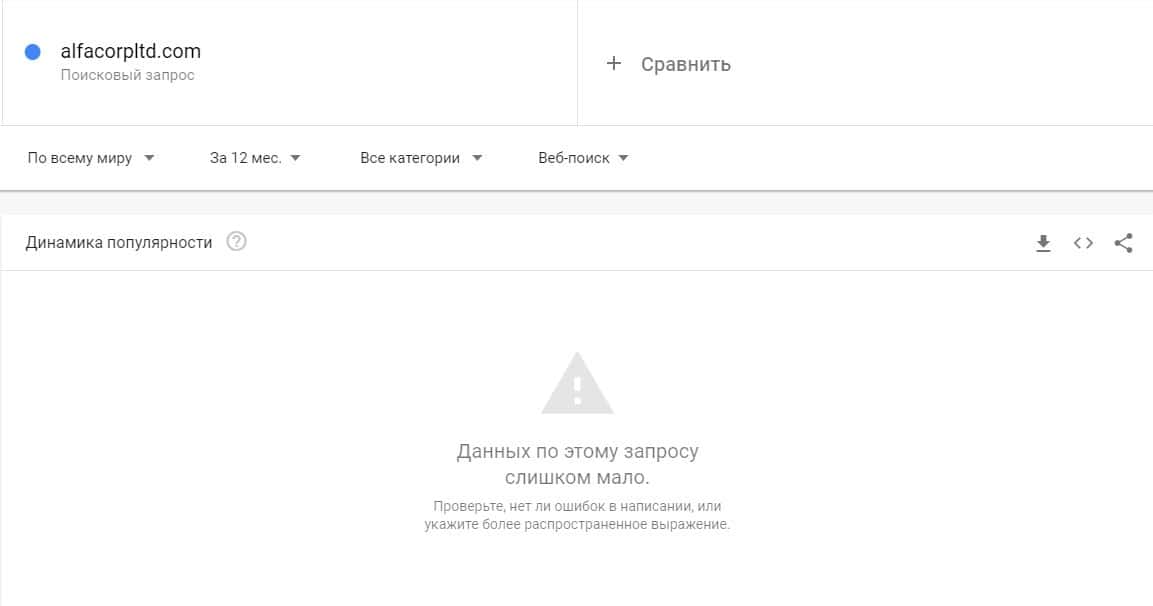 Что касается версии бренда названия самого официального сайта "alfacorpltd.com" то в Гугл не было найдено ни одного показа за последний месяц.