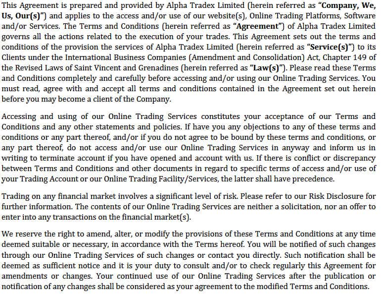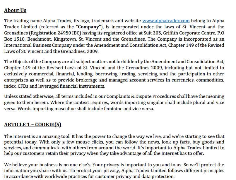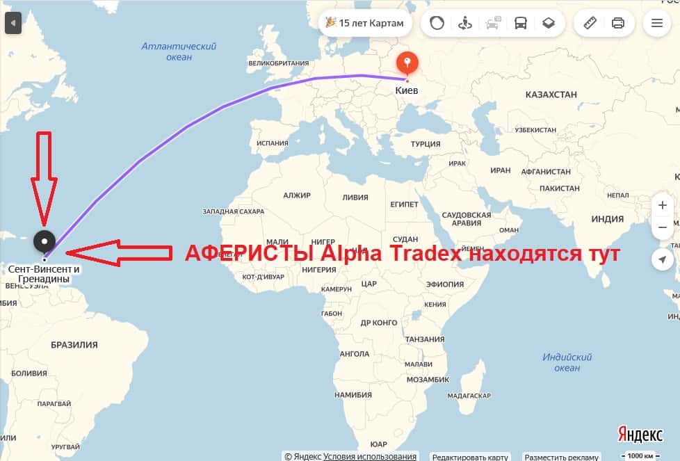 Соблюдая собственную безопасность, мошенники Alpha Tradex решили зарегистрироваться подальше от стран СНГ. Сент Винсент и Гренадины - известная гавань для всякеого рода мошенников. Именно тут и зарегистрированы наши голубчики. Когда наступит скам вам просто некуда будет обращаться. Вы же не поедите оспаривать все это дело так далеко, верно?