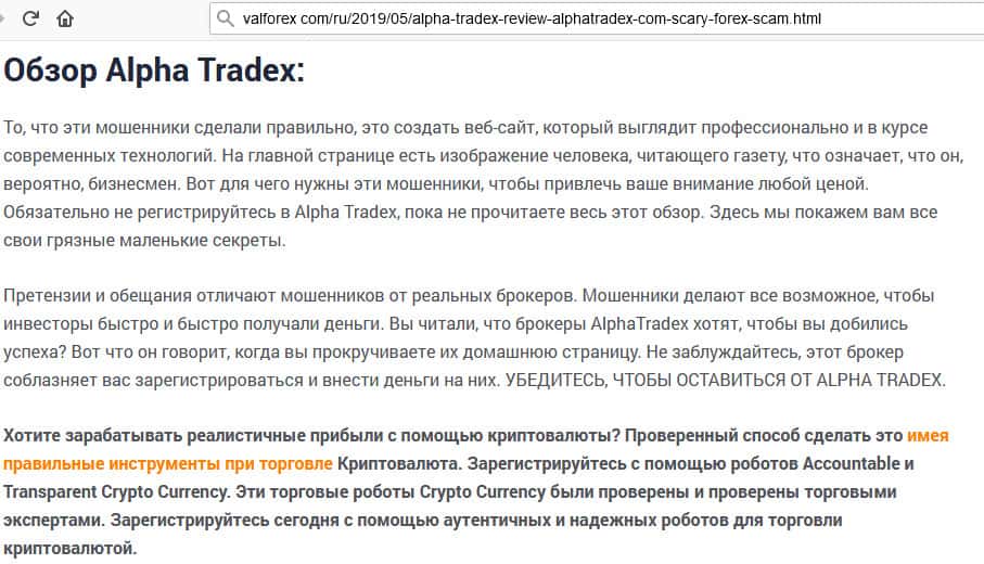 valforex com - авторитетный источник, где высказано мнение о мошенниках Alpha Tradex