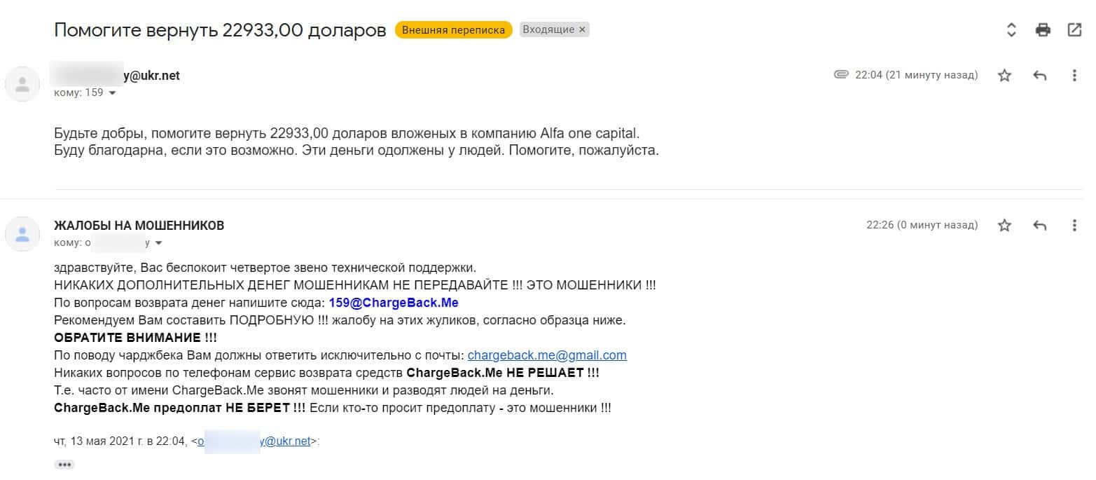 - Жалоба на обманщиков Alfa One Capital, которые не выводят деньги