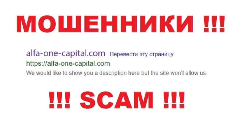 Альфа Ван Капитал - еще один баблосборник, промышляющий в интернете нечестными способами. Эта контора пытается обогатиться на желании людей заработать денег, вложив их в торговлю на форекс. Мошенники пытались создать легенду, что они являются международной брокерской компанией с большим оборотом. Но это только слова, которые не имеют ничего общего с действительностью. А реальность такова, что эта шарага представляет собой типичный лохотрон без лицензии, с регистрацией в офшоре, которая также вполне может быть фейком. Не стоит доверять свои средства мошенникам Alfa One Capital, состряпавшим примитивный сайтик на скорую руку!