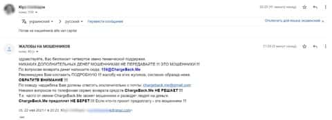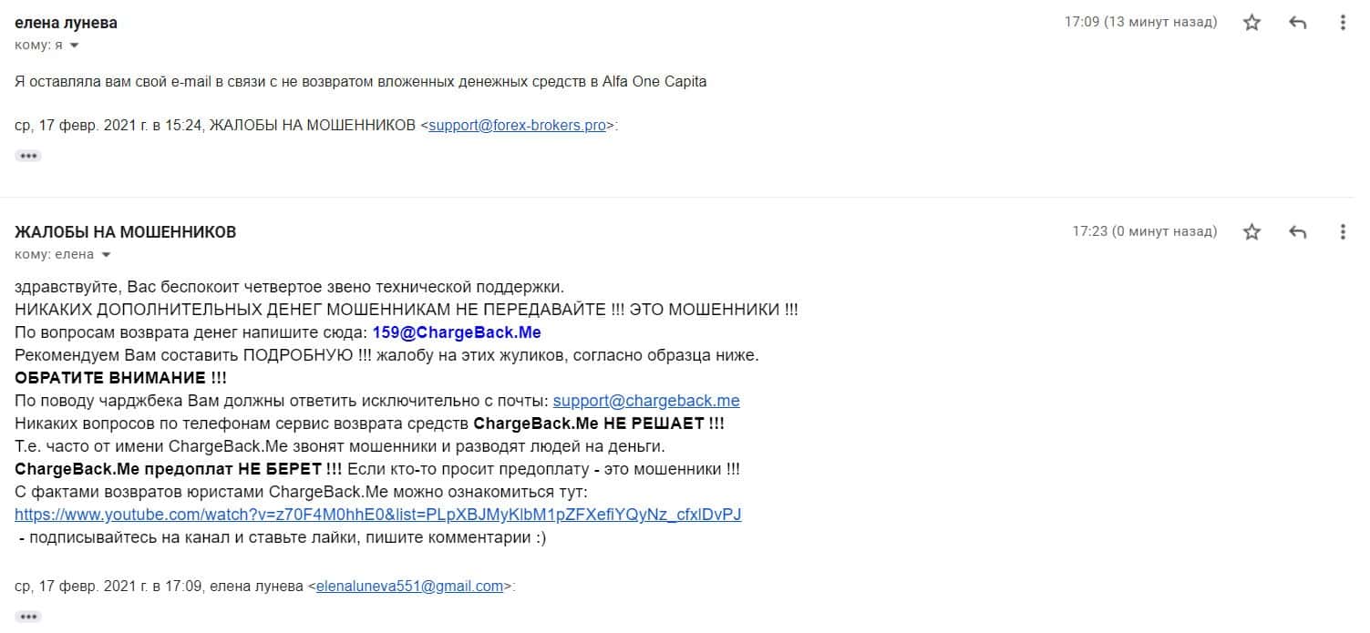 На сайте Альфа Ван Капитал можно увидеть адрес электронной почты. Однако, сомнительно, что мошенники будут отвечать на претензии клиентов.