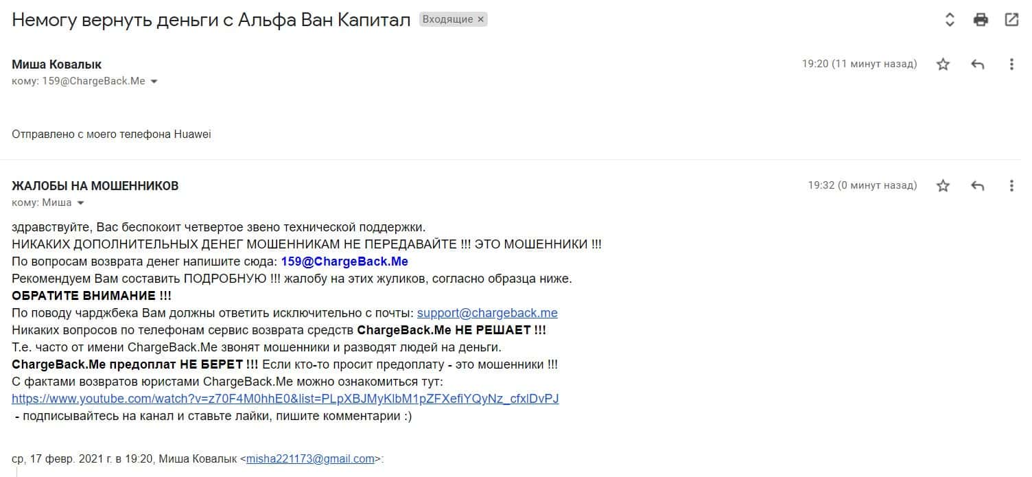 Еще одна жалоба на лохотронщиков Альфа Ван Капитал