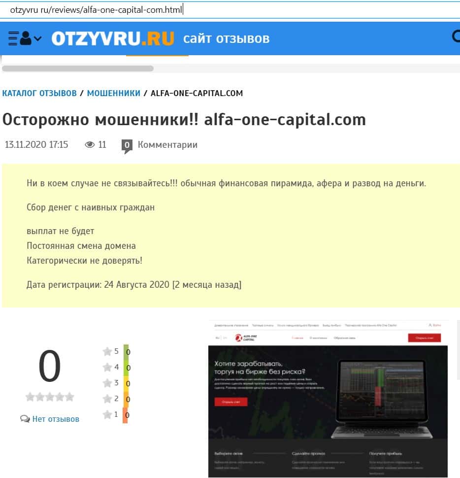 Сайт otzyvru ru считает компанию Alfa One Capital финансовой пирамидой и разводом на деньги. Лучше не связываться с этой сомнительной шарашкой!