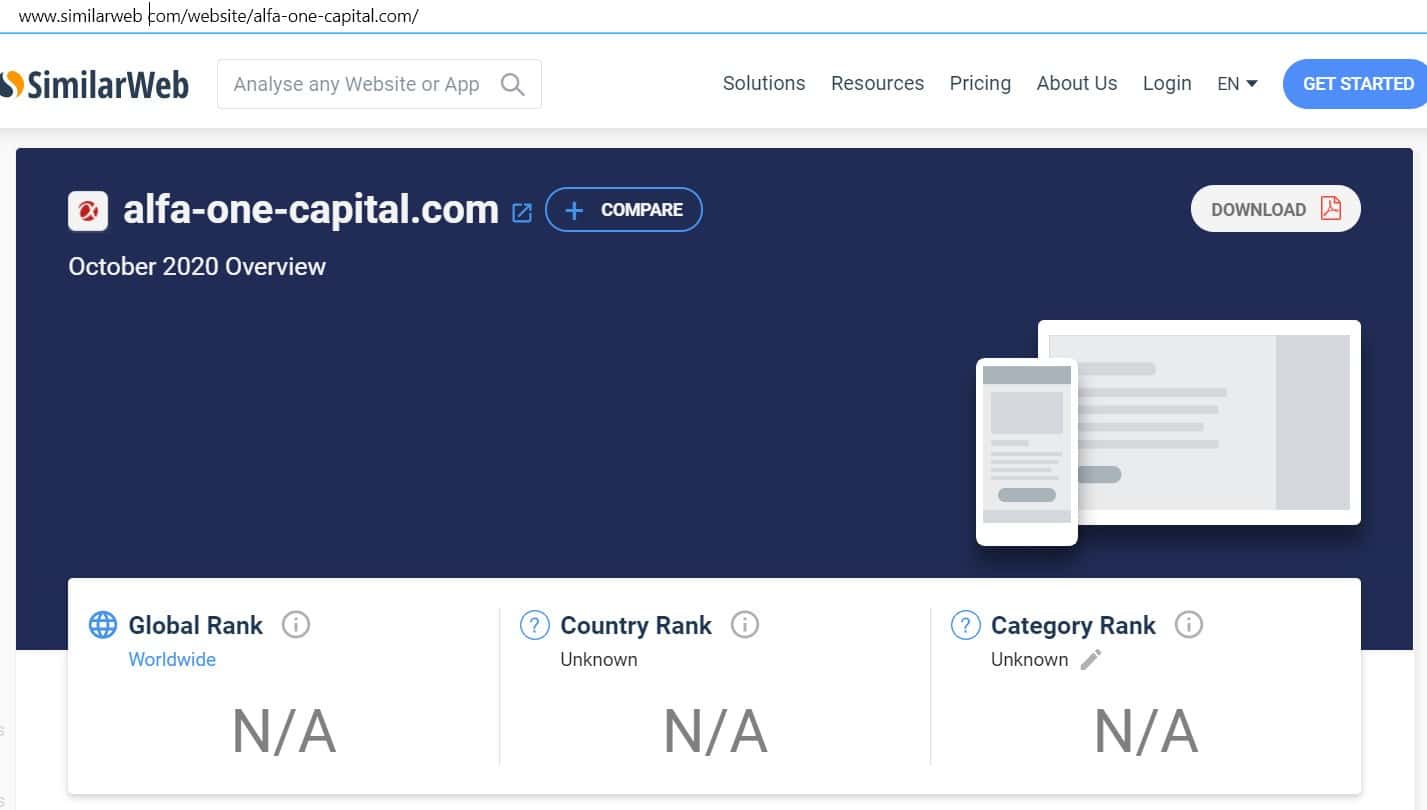 Данные сервиса проверки трафика Симиларвеб о домене alfa-one-capital com
