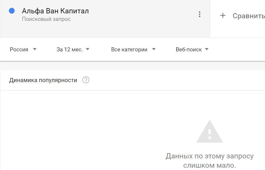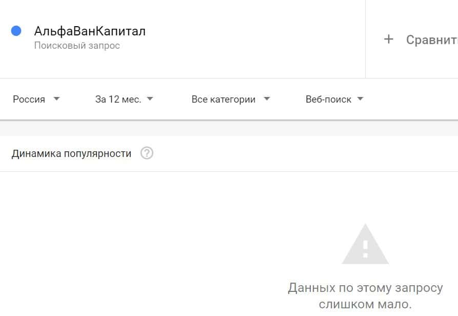 То же название на русском языке, но с пробелами "Альфа Ван Капитал", пользователи также почти не искали в системе Гугл.