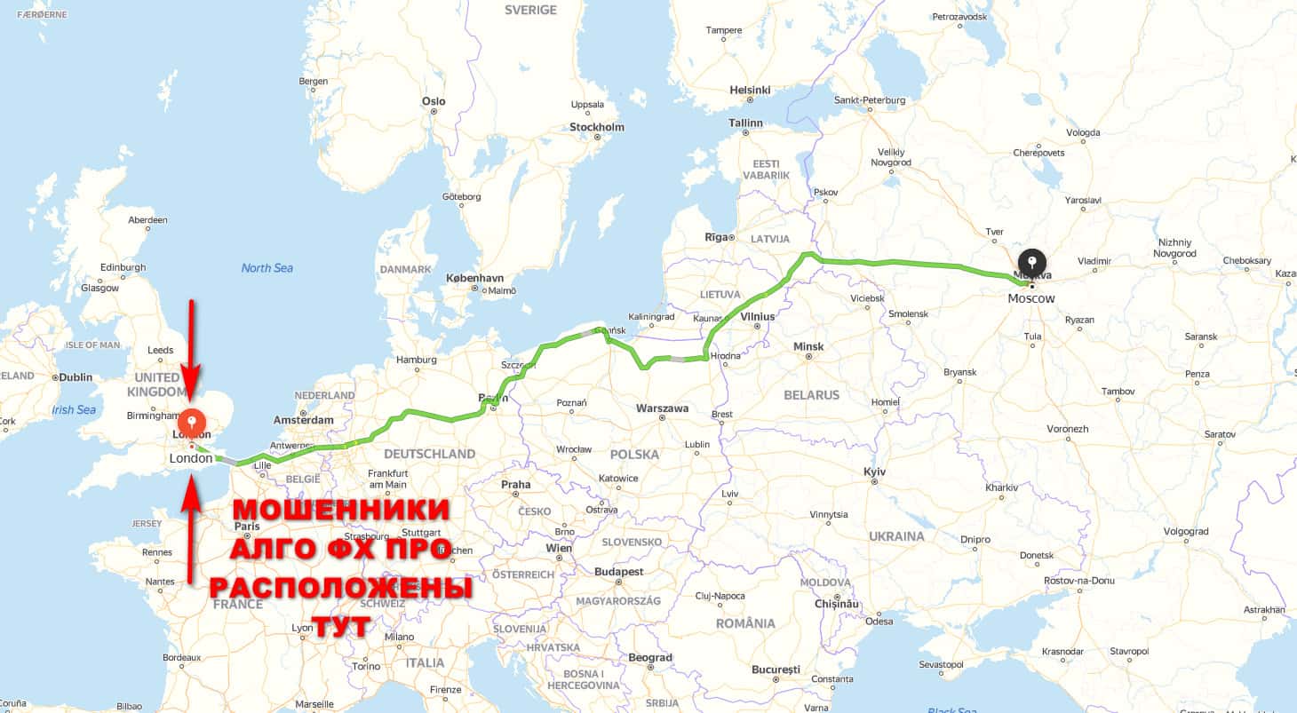 Если считать, что контора Алго ФХ Про принадлежит конторе Фор Трейд, то можно считать, что их местонахождение расположено в Лондоне, где они скрываются от правосудия.