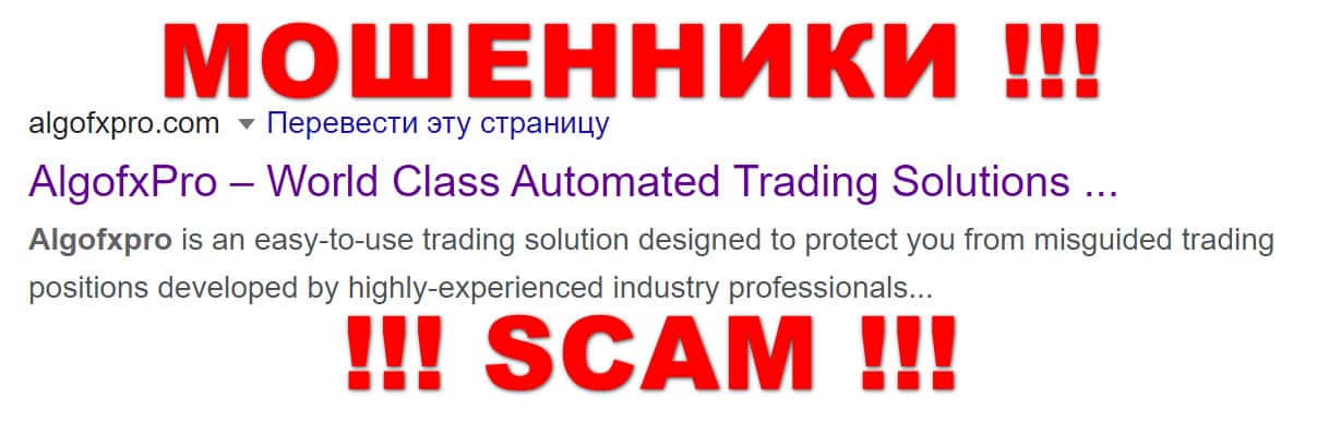 Не популярным считается и бренд "AlgoFX Pro", который не был замечен в поисковых системах, в том числе и в Гугл.