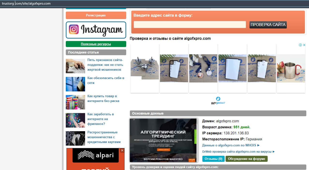 Мошеннический проект AlgoFXPro также сотрудничает со всем известной конторой Альпари, и ее лучше всего обходить стороной, если конечно не хотите лишиться денег.