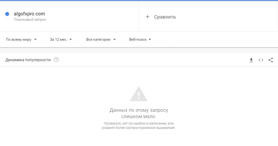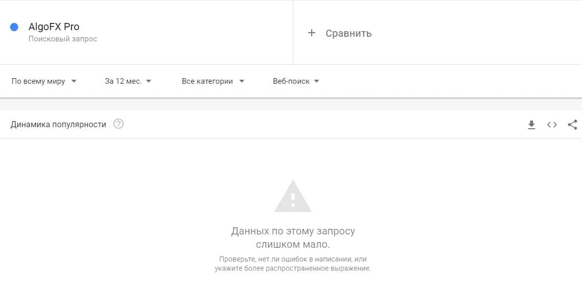 По поводу данной вариации бренда "АлгоФХПро", то здесь нет ни одного запроса и статистику по системе Гугл Трендс невозможно найти.