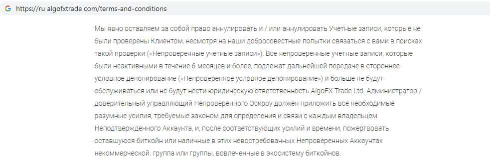Клиентское соглашение скам-конторы Алго ФХ Трейд