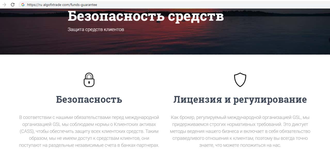 - Защита средств клиентов на сайте организации Алго ФХ Трейд