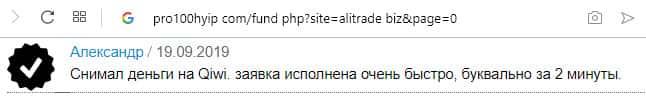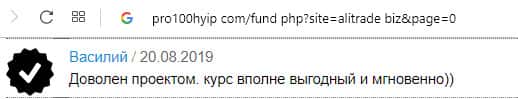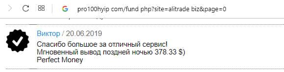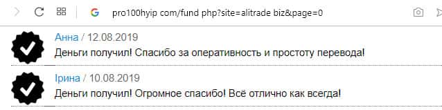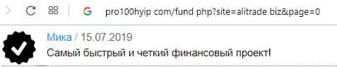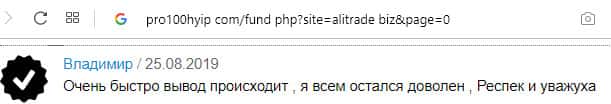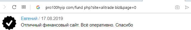 - Ещё одна пачка проплаченных отзывов об АлиТрейд на портале pro100hyip