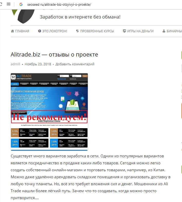 Портал seoseed ru вскрывает суть аферы мошенников из АлиТрейд
